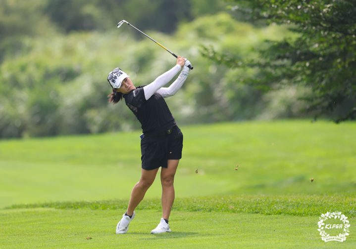 [서울=뉴시스] 7일 제주 서귀포 사이프러스 골프앤리조트에서 열린 제주삼다수 마스터스 1라운드 15번홀에서 지한솔이 아이언샷을 하고 있다. (사진=KLPGA 제공) 2025.08.07. [email protected] *재판매 및 DB 금지
