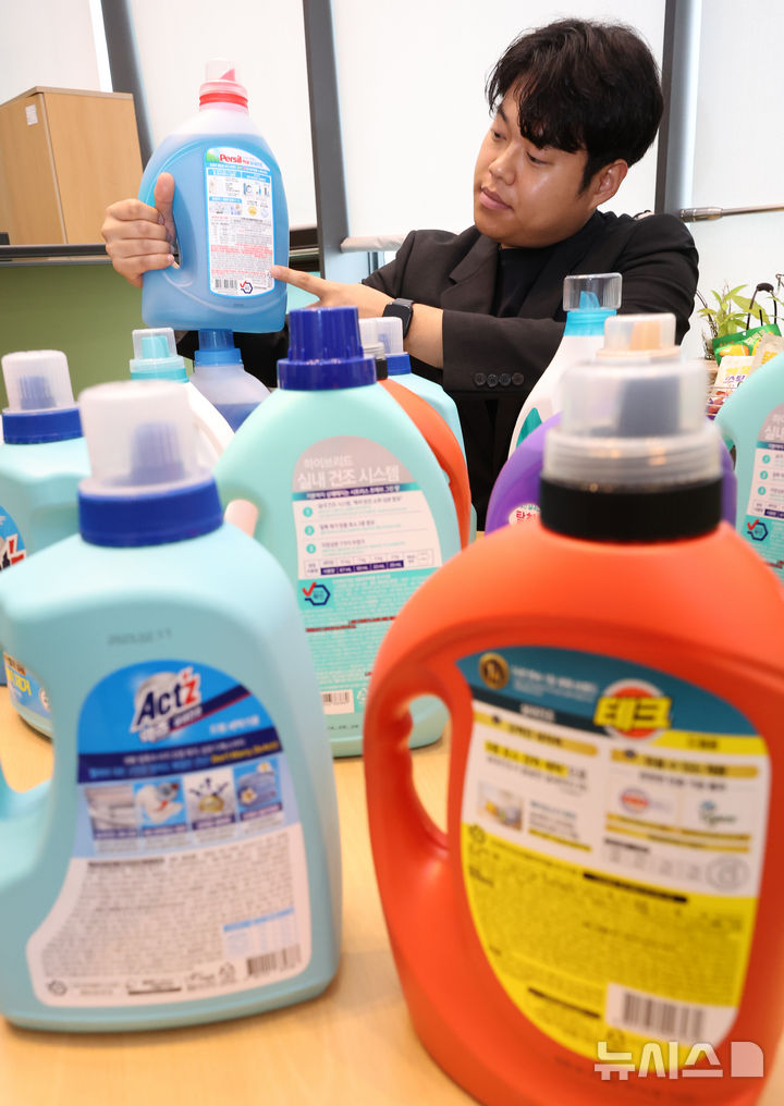 [세종=뉴시스] 강종민 기자 = 한국소비자원 관계자가 7일 세종시 정부세종청사에서 액체형 세탁세제 8개 제품에 대해 품질과 안전성, 환경성을 시험·평가한 결과를 설명하고 있다.