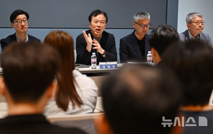 [서울=뉴시스] 김근수 기자 = 정태호 국정기획위원회 경제1분과 위원장과 위원들이 7일 서울 관악구 서울대 AI연구원에서 열린 국정위 ‘기술과 아이디어로 혁신하는 우리곁의 AI 클러스터’ 현장방문 행사에서 연구원·대학원생들과 대담하고 있다. (공동취재) 2025.08.07. [email protected]