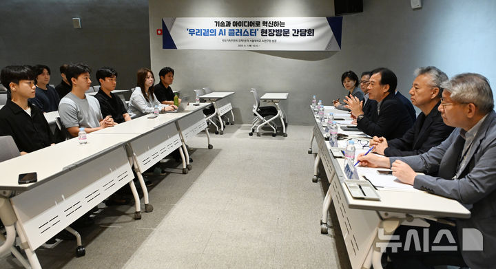 [서울=뉴시스] 김근수 기자 = 정태호 국정기획위원회 경제1분과 위원장과 위원들이 7일 서울 관악구 서울대 AI연구원에서 열린 국정위 ‘기술과 아이디어로 혁신하는 우리곁의 AI 클러스터’ 현장방문 행사에서 연구원·대학원생들과 대담하고 있다. (공동취재) 2025.08.07. [email protected]