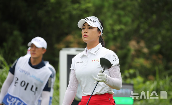 [서귀포=뉴시스] 우장호 기자 = 7일 오후 제주 서귀포시 사이프러스 골프앤리조트에서 열린 KLPGA 하반기 투어 시작을 알리는 '제12회 제주 삼다수 마스터스십(총상금 10억원, 우승상금 1억8000만원 규모)' FR에서 국내 복귀전에 나선 윤이나가 1번홀에서 티오프 후 공의 위치를 확인하고 있다. 2025.08.07. [email protected]