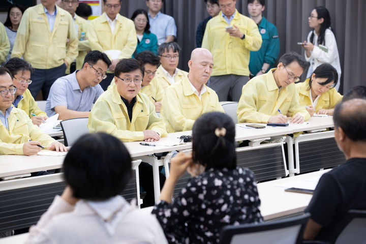 [서울=뉴시스] 이영환 기자 = 김성환 환경부 장관이 7일 대구 달성군 강정고령보를 찾아 녹조 발생 현황 및 대응 상황을 점검한 후 지역 주민들과 간담회를 하고 있다. (사진=환경부 제공) 2025.08.07. [email protected] *재판매 및 DB 금지