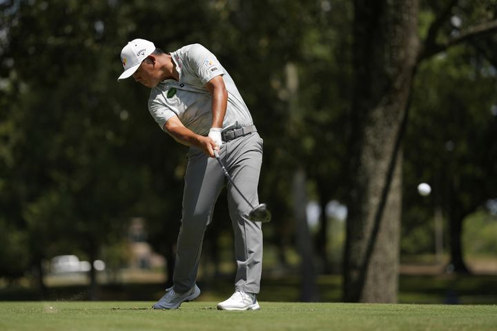 [멤피스=AP/뉴시스] 김시우가 7일(현지 시간) 미 테네시주 멤피스의 TPC 사우스윈드에서 열리는 미국프로골프(PGA 투어 페덱스컵 플레이오프(PO) 1차전 세인트 주드 챔피언십 첫날 5번 홀에서 티샷하고 있다. 김시우는 5언더파 65타 단독 6위에 이름을 올렸다. 2025.08.08.