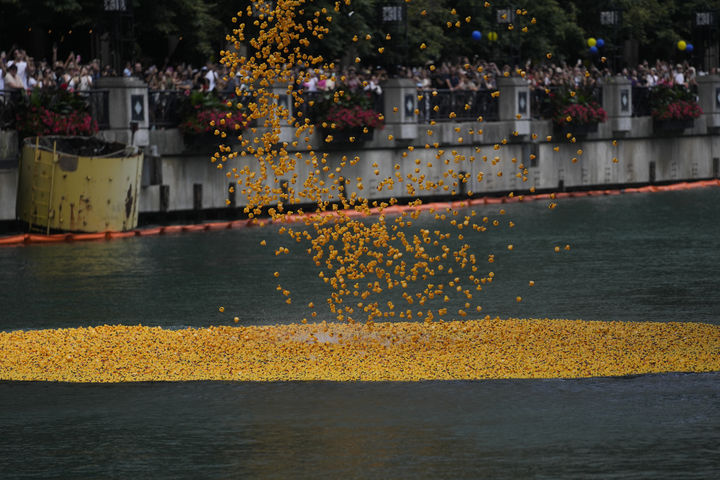 [시카고=AP/뉴시스] 7일(현지시간) 미 일리노이주 시카고에서 스페셜올림픽 후원을 위한 연례 ‘시카고 더키 더비'(Chicago Ducky Derby)가 열려, 고무 오리 8만2천여 마리가 시카고강에 투입되고 있다. 이 행사는 지적 장애인을 위한 ‘일리노이 스페셜올림픽’을 지원하는 자선 프로젝트로, 참가자들은 온라인을 통해 고무 오리를 1개당 일정 금액에 입양할 수 있으며, 골인 지점에 도달한 순위에 따라 후원자들에게 다양한 경품이 지급된다. 주최 측에 따르면, 올해 행사에서는 약 60만 달러(약 8억3천만 원)의 후원금이 모금됐다. 2025.08.08.