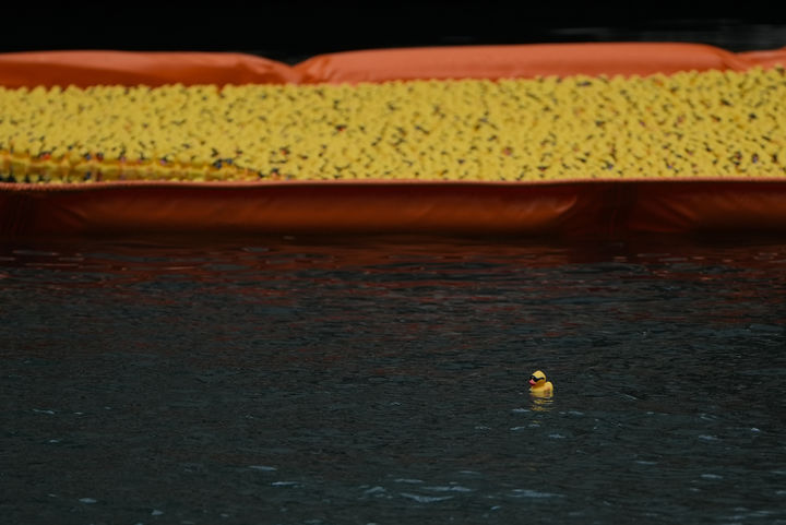 [시카고=AP/뉴시스] 7일(현지시간) 미 일리노이주 시카고에서 스페셜올림픽 후원을 위한 연례 ‘시카고 더키 더비'(Chicago Ducky Derby)가 열린 가운데 고무 오리 1마리가 대열에서 이탈해 방황(?)하고 있다. 이 행사는 지적 장애인을 위한 ‘일리노이 스페셜올림픽’을 지원하는 자선 프로젝트로, 참가자들은 온라인을 통해 고무 오리를 1개당 일정 금액에 입양할 수 있으며, 골인 지점에 도달한 순위에 따라 후원자들에게 다양한 경품이 지급된다. 주최 측에 따르면, 올해 행사에서는 고무 오리 8만2천여 마리가 투입됐으며 약 60만 달러(약 8억3천만 원)의 후원금이 모금됐다. 2025.08.08.