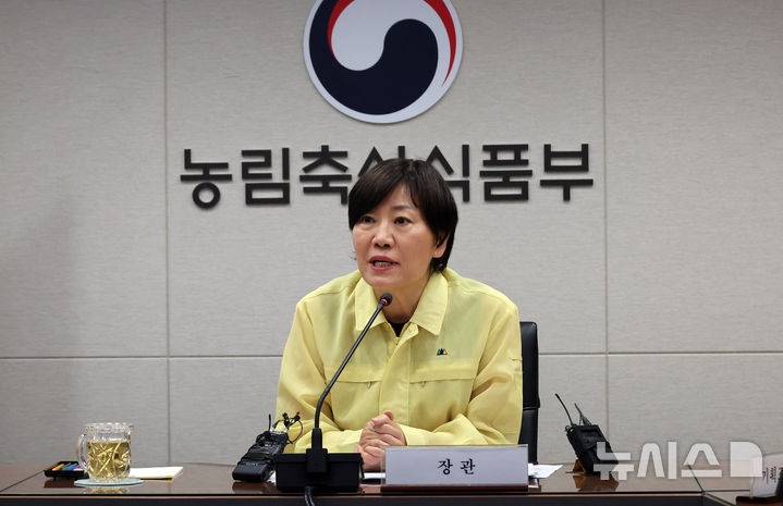[세종=뉴시스] 강종민 기자 = 송미령 농림축산식품부 장관이 8일 세종시 정부세종청사 농업재해상황실에서 열린 호우 대비 추진상황 점검회의에서 농업분야 피해 최소화를 위한 분야별 추진상황을 점검하고 있다. 2025.08.08. [email protected]