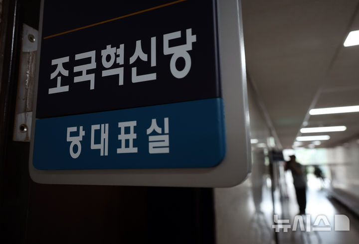 [서울=뉴시스] 고승민 기자 = 조국 전 조국혁신당 대표가 광복절 특별사면에 포함될 것으로 예상되는 8일 서울 여의도 국회 조국혁신당 당대표실 명판이 눈에 띈다. 2025.08.08. [email protected]