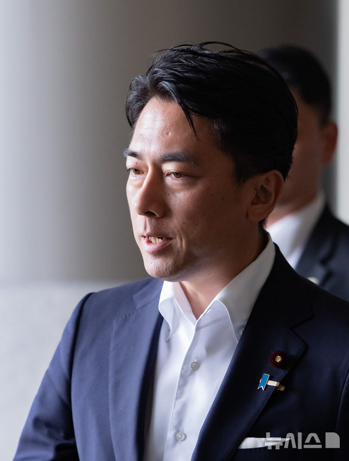 [서울=뉴시스] 황준선 기자 = 고이즈미 신지로(小泉進次郞) 일본 농림수산상이 9일 오후 APEC 식량안보장관회의 및 한일중 농업장관회의 등에 참석차 서울 강서구 김포국제공항을 통해 입국하고 있다. 2025.08.09. [email protected]