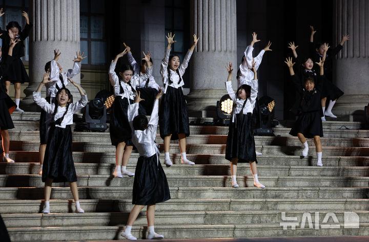 [서울=뉴시스] 이영환 기자 = 11일 오후 서울 중구 덕수궁 석조전 앞에서 열린 광복 80주년 특별전 '빛을 담은 항일유산' 개막행사에서 오프닝 공연이 진행되고 있다. 2025.08.11. [email protected]