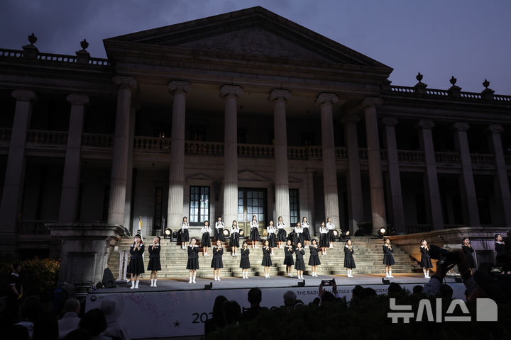 [서울=뉴시스] 이영환 기자 = 11일 오후 서울 중구 덕수궁 석조전 앞에서 열린 광복 80주년 특별전 '빛을 담은 항일유산' 개막행사에서 오프닝 공연이 진행되고 있다. 2025.08.11. [email protected]
