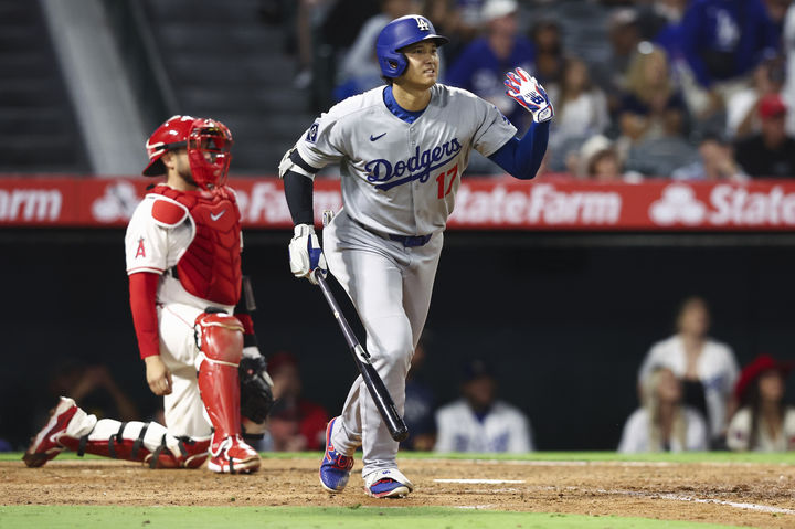 [애너하임=AP/뉴시스] LA 다저스의 오타니 쇼헤이가 11일(현지 시간) 미 캘리포니아주 애너하임의 에인절 스타디움에서 열린 2025 메이저리그 LA 에인절스와의 경기 8회 초 1점 홈런(시즌 42호)을 치고 있다. 오타니는 3경기 연속 홈런 포를 가동하며 3타수 1안타(홈런) 1타점 1득점 1볼넷 1삼진을 기록했고, 다저스는 4-7로 패했다. 2025.08.12.