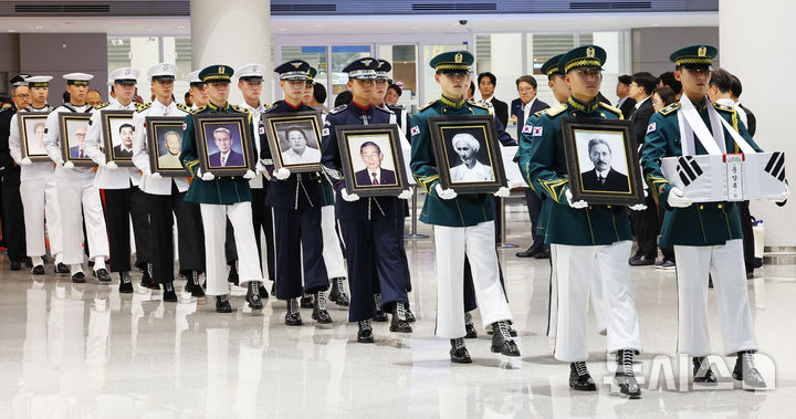 이번에 국내로 송환된 독립유공자는 문양목 지사, 임창모 지사, 김재은 지사, 김기주 지사, 한응규 지사, 김덕윤 지사다. 국가보훈부는 독립유공자 6명에 대해 건국훈장을 헌정한 뒤 이들 영현을 대전현충원으로 봉송할 계획이다.  2025.08.12. [email protected]
