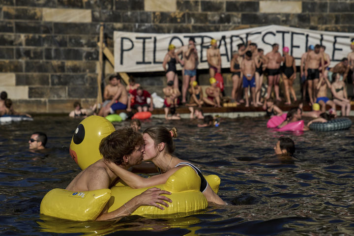 '수영 금지' 슈프레강에서 수영 데이트 즐기는 연인
