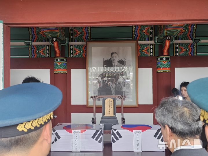 [태안=뉴시스] 김덕진 기자=독립운동가 우운 문양목 선생이 13일 오후 2시께 자신이 태어난 충남 태안군 몽산리 268의2번지 집에 부인과 함께 120년 만에 돌아왔다. 2025.08.13. [email protected]