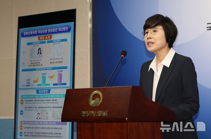 [세종=뉴시스] 강종민 기자 = 이순희 국민권익위원회 사회제도개선과장이 13일 세종시 정부세종청사에서 장애인등록증 국외이용 편의증진 개선방안을 설명하고 있다. 2025.08.13. [email protected]