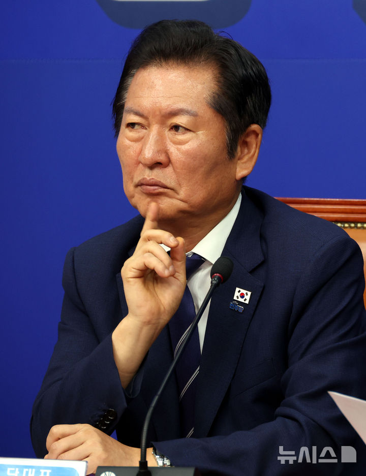 [서울=뉴시스] 조성봉 기자 = 정청래 더불어민주당 대표가 13일 오전 서울 여의도 국회에서 열린 최고위원회의에서 잠시 생각에 잠겨있다. 2025.08.13. [email protected]