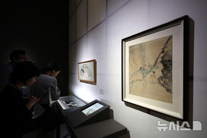 [서울=뉴시스] 박진희 기자 = 국립현대미술관은 광복 80주년 기념전 '향수(鄕愁), 고향을 그리다' 언론공개회를 13일 서울 중구 국립현대미술관 덕수궁에서 갖고 일제강점기와 광복, 분단과 전쟁, 그리고 산업화, 도시화의 흐름 속에서 한국인들의 마음속에 간직해온 ‘고향’의 정서를 한국 근현대 풍경화와 시, 망명 가사 등을 선보이고 있다. 사진은 이인성 작가의 '무제'. 2025.08.13. [email protected]