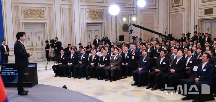 [서울=뉴시스] 최동준 기자 = 이한주 국정기획위원회 위원장이 13일 청와대 영빈관에서 열린 국정기획위원회 국민보고대회에서 새 정부 출범 의미 발표를 하고 있다. (대통령실통신사진기자단) 2025.08.13. [email protected]
