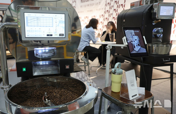 [고양=뉴시스] 전진환 기자 = 13일 오후 경기도 고양시 킨텍스에서 열린 2025 카페디저트페어에서 예비창업자가 핸드드립 카페 창업 상담을 받고 있다.  2025.08.13. [email protected]