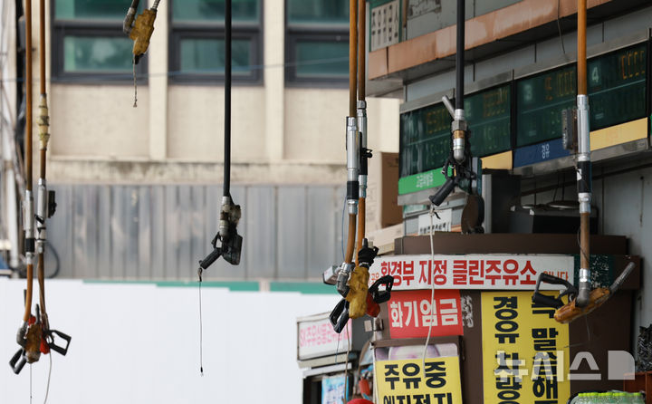 [서울=뉴시스] 이영환 기자 = 14일 오후 서울 시내의 한 주유소의 주유건이 보이고 있다.