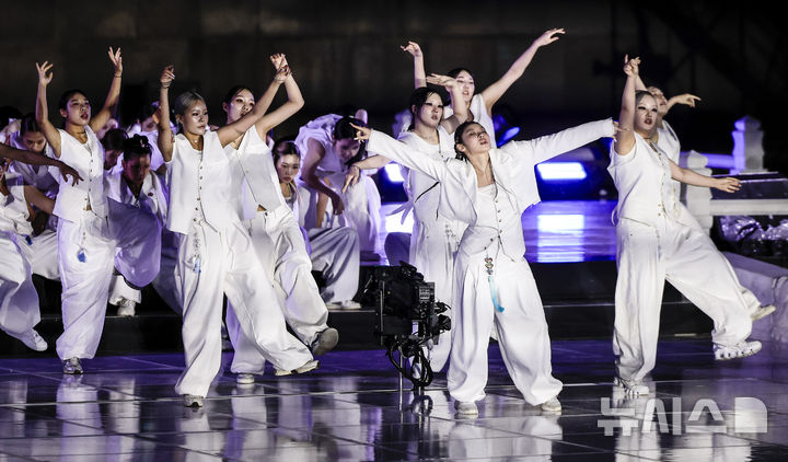 [서울=뉴시스] 정병혁 기자 = 14일 서울 종로구 경복구 흥례문광장에서 열린 광복 80년 전야제 '우리는 빛이다'에서 범접의 공연이 펼쳐지고 있다. 2025.08.14. [email protected]