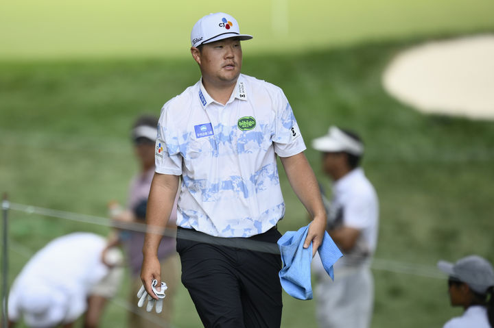 [오윙스밀스=AP/뉴시스] 임성재가 14일(현지 시간) 미 메릴랜드주 오윙스밀스 케이브스 밸리 GC에서 열린 미국프로골프(PGA) 투어 플레이오프(PO) 2차전 BMW 챔피언십 첫날 9번 홀 티잉 구역으로 걸어가고 있다. 임성재는 1오버파 71타로 김시우와 함께 공동 25위를 기록했다. 2025.08.15.