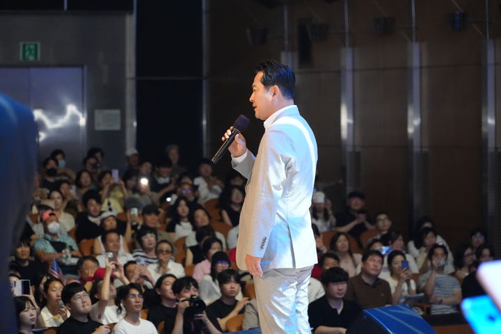 [서울=뉴시스] 김명년 기자 = 장동혁 국민의힘 당대표 후보가 15일 서울 강남구 코엑스에서 열린 전한길 전 한국사 강사 주최 '광복 80주년 기념 자유콘서트'에 참석해 있다.(사진=장동혁 의원실 제공) 2025.08.15. [email protected] *재판매 및 DB 금지