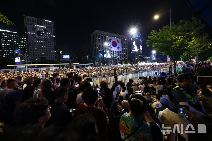 [서울=뉴시스] 최진석 기자 = 15일 서울 광화문 광장에서 광복 80년, 국민주권으로 미래를 세우다 제21대 대통령 국민임명식이 열리고 있다. 2025.08.15. [email protected]