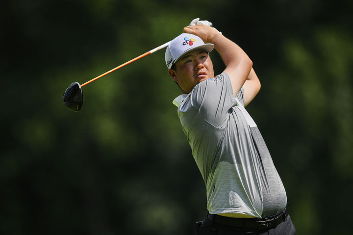 [오윙스밀스=AP/뉴시스] 임성재가 15일(현지 시간) 미 메릴랜드주 오윙스밀스 케이브스 밸리 GC에서 열린 미국프로골프(PGA) 투어 플레이오프(PO) 2차전 BMW 챔피언십 2라운드 7번 홀에서 티샷하고 있다. 임성재는 중간 합계 6오버파 146타 공동 41위를 기록했다. 2025.08.16.