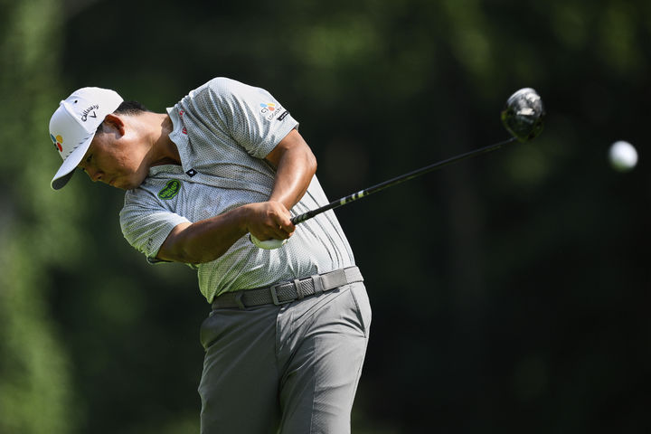 [오윙스밀스=AP/뉴시스] 김시우가 15일(현지 시간) 미 메릴랜드주 오윙스밀스 케이브스 밸리 GC에서 열린 미국프로골프(PGA) 투어 플레이오프(PO) 2차전 BMW 챔피언십 2라운드 7번 홀에서 티샷하고 있다. 김시우는 중간 합계 이븐파 140타 공동 22위를 기록했다. 2025.08.16.