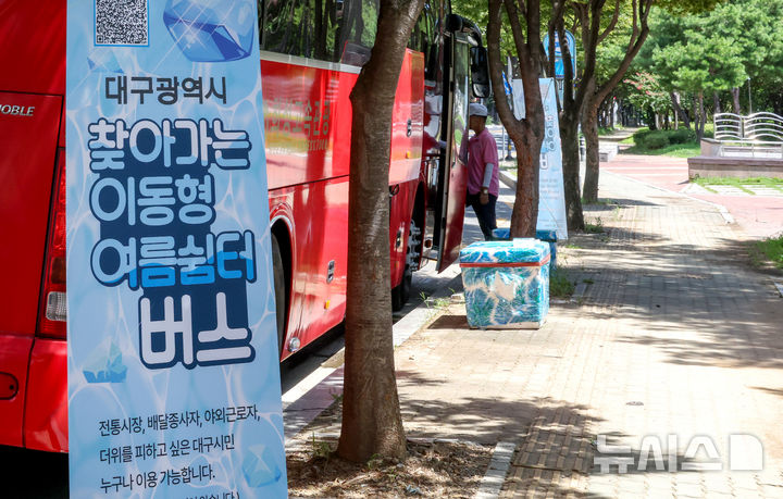 [대구=뉴시스] 이무열 기자 = 폭염경보가 발효된 17일 대구 동구 율하체육공원 앞에 ‘찾아가는 이동형 여름 쉼터 버스’가 정차돼 있다.