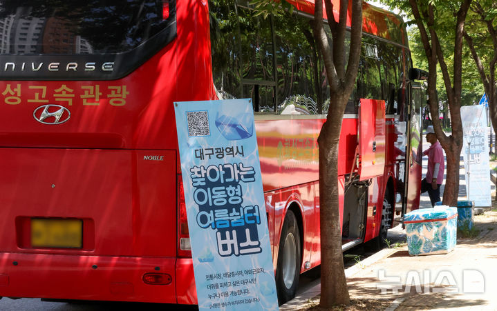 [대구=뉴시스] 이무열 기자 = 폭염경보가 발효된 17일 대구 동구 율하체육공원 앞에 ‘찾아가는 이동형 여름 쉼터 버스’가 정차돼 있다.