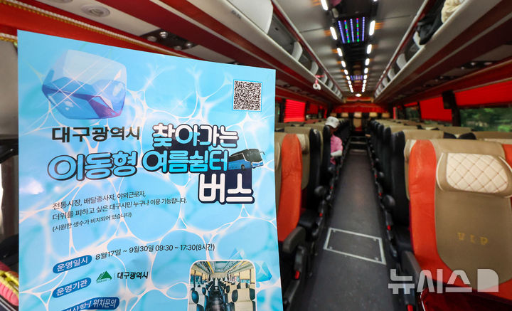 [대구=뉴시스] 이무열 기자 = 폭염경보가 발효된 17일 대구 동구 율하체육공원 앞에 정차된 ‘찾아가는 이동형 여름 쉼터 버스’ 안에서 한 시민이 더위를 식히고 있다.