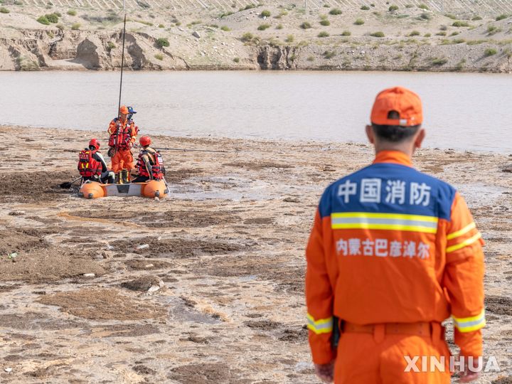[바얀누르=신화/뉴시스] 18일(현지 시간) 중국 네이멍구 자치구 바얀누르 울라터후치에서 소방관들이 홍수 실종자를 수색하고 있다. 현지 당국은 최근 야영장을 덮친 돌발 홍수로 지금까지 10명이 사망하고 2명이 실종됐다고 밝혔다. 2025.08.18.