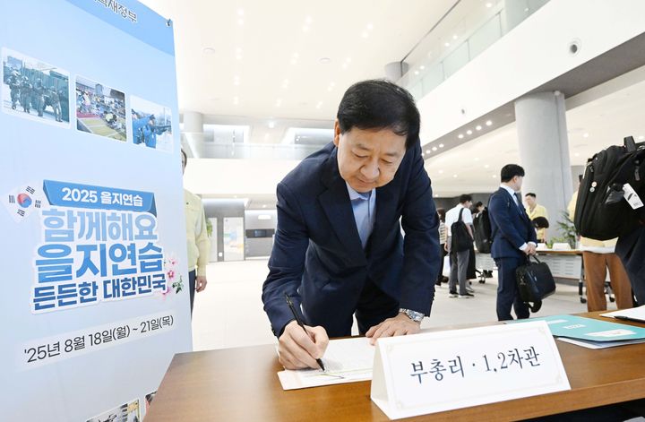 [서울=뉴시스] 구윤철 부총리 겸 기획재정부 장관이 18일 세종시 정부세종청사에서 2025 을지훈련 연습과 관련 전공무원 비상소집 발령, 소속기관으로 응소하고 있다. (사진=기획재정부 제공) 2025.08.18. [email protected] *재판매 및 DB 금지