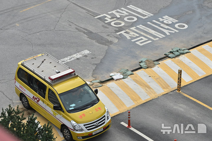 [광주=뉴시스] 이영주 기자 = 금호타이어 광주공장 화재 관련 합동 감식이 진행되는 18일 오전 광주 광산구 금호타이어 광주공장에서 광주소방본부의 화재조사차량이 움직이고 있다. 2025.08.18. [email protected]