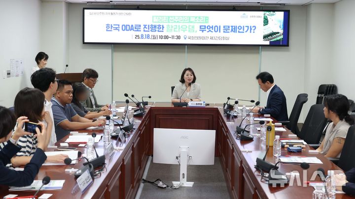 [서울=뉴시스] 조성봉 기자 = 이주희 더불어민주당 의원이 18일 오전 서울 여의도 국회 의원회관 간담회의실에서 열린 '한국 ODA로 진행한 할라우댐, 무엇이 문제인가? 필리핀 선주민, 지역 활동가 방한 간담회'에서 발언을 하고 있다.2025.08.18. [email protected]