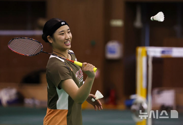 [진천=뉴시스] 배훈식 기자 = 대한민국 배드민턴 대표 선수들이 18일 오후 충북 진천군 국가대표선수촌에서 밝은 표정으로 훈련을 하고 있다. 2025.08.18. [email protected]