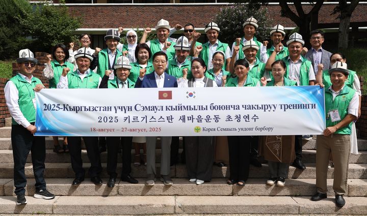 [서울=뉴시스] 19일 경기 성남시 분당구 새마을운동중앙회에서 열린 키르기스스탄 초청 새마을교육 입교식을 마친 연수생들이 기념 촬영을 하고 있다. (사진=새마을운동중앙회 제공) 2025.08.19. [email protected]