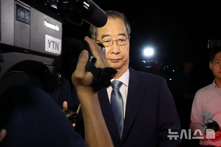 [서울=뉴시스] 권창회 기자 = 한덕수 전 국무총리가 20일 서울 서초구 서울고등검찰청에 마련된 조은석 내란특검 사무실에서 12.3 비상계엄 방조 등 혐의로 피의자 조사를 마친 뒤 귀가하고 있다. 2025.08.20. [email protected]