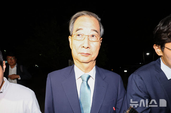 [서울=뉴시스] 권창회 기자 = 한덕수 전 국무총리가 20일 서울 서초구 서울고등검찰청에 마련된 조은석 내란특검 사무실에서 12.3 비상계엄 방조 등 혐의로 피의자 조사를 마친 뒤 귀가하고 있다. 2025.08.20. [email protected]