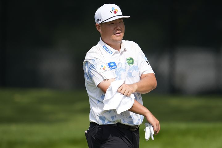 [애틀랜타=AP/뉴시스] 임성재가 21일(현지 시간) 미 조지아주 애틀랜타의 이스트레이크 골프클럽에서 열린 미국프로골프(PG) 투어 챔피언십 첫날 1번 그린으로 걸어가고 있다. 임성재는 2언더파 68타 공동 17위에 이름을 올렸다. 2025.08.22.