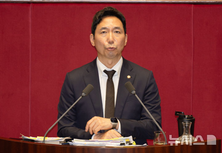 [서울=뉴시스] 김명년 기자 = 이정헌 더불어민주당 의원이 22일 오전 서울 여의도 국회 본회의장에서 한국교육방송공사법(EBS법) 개정안에 대한 무제한 토론(필리버스터)을 하고 있다. 2025.08.22. [email protected]