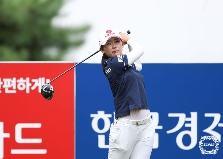 [서울=뉴시스] 22일 경기 포천 포천힐스CC에서 열린 BC카드 한경 레이디스컵 2라운드 5번홀에서 황유민이 티샷을 하고 있다. (사진=KLPGA 제공) 2025.08.22. [email protected] *재판매 및 DB 금지
