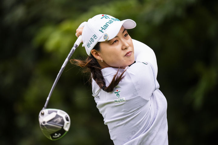 [미시소가=AP/뉴시스] 이민지(호주)가 23일(현지 시간) 캐나다 온타리오주 미시소가의 미시소가 GC에서 열린 미국 여자프로골프(LPGA) 투어 CPKC 여자 오픈 3라운드 5번 홀에서 티샷하고 있다. 이민지는 중간 합계 11언더파 202타로 브룩 헨더슨(캐나다)과 함께 공동 선두에 올랐다. 2025.08.24.