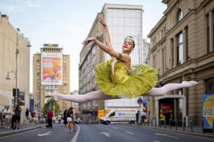 [부쿠레슈티=AP/뉴시스] 23일(현지 시간) 루마니아 부쿠레슈티 국립역사박물관 앞 대로에서 연례 '댄스 나이트' 행사가 열린 가운데 국립 오페라 발레 스튜디오 소속 무용수 다리아 토마(15)가 춤추고 있다. 이 행사는 개방형 거리 문화 프로그램 '오픈 스트리트'(Open Streets)의 일환으로, 춤을 매개로 지역 사회와 관광객이 함께하는 참여형 문화 축제다. 2025.08.24.