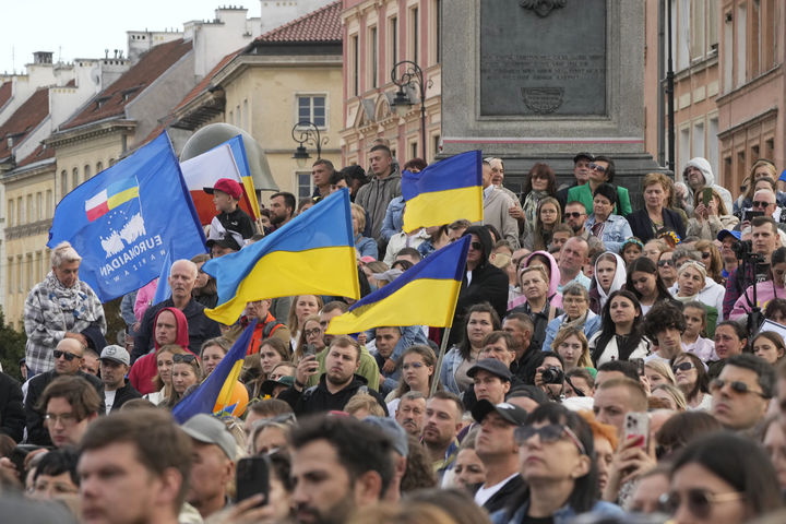 바르샤바 광장에 모인 우크라이나 지지자들