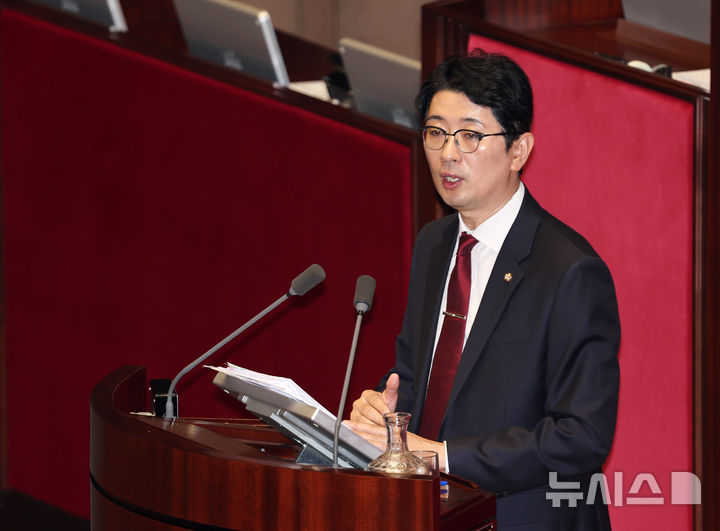 [서울=뉴시스] 김명년 기자 = 주진우 국민의힘 의원이 25일 오전 서울 여의도 국회 본회의에서 상법 일부개정법률안(2차 상법 개정안)에 대한 무제한토론(필리버스터)을 하고 있다. 2025.08.25. [email protected]