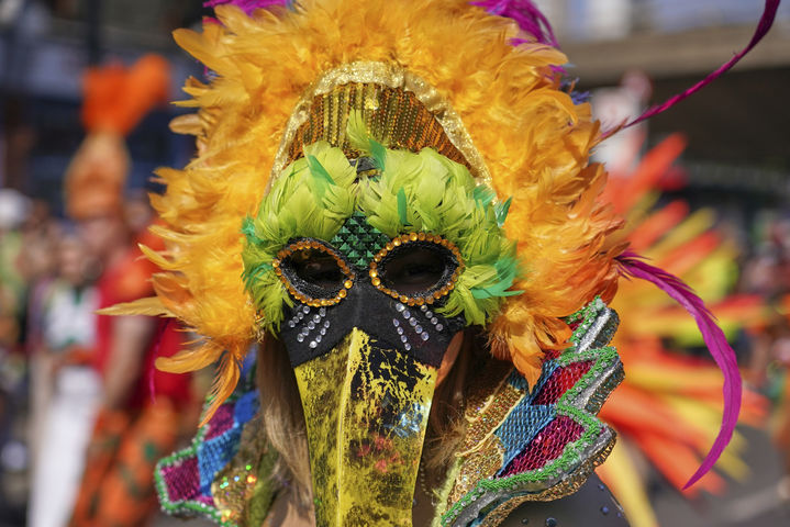 [런던=AP/뉴시스] 25일(현지 시간) 영국 런던 노팅힐에서 유럽 최대의 거리 축제인 '노팅힐 카니발'이 열려 한 참가자가 행진하고 있다. 1964년 카리브해 이민자들이 모여 그들의 문화와 전통을 알리는 거리 축제로 시작해 영국 대표 축제로 자리 잡은 '노팅힐 카니발'은 매년 8월 마지막 주말에 열린다. 2025.08.26.