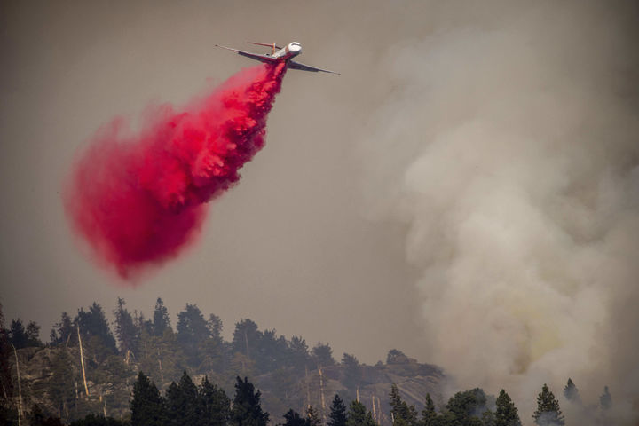 '가넷 파이어' 산불 현장에 지연제 뿌리는 항공기